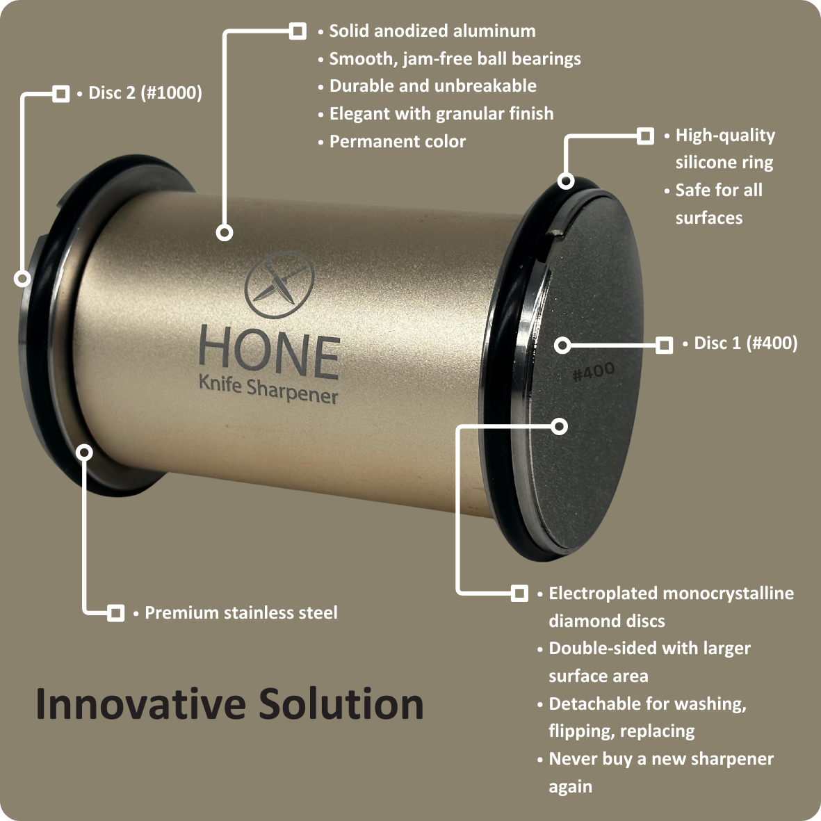Free #3000 Ceramic Disc (CAD 45 Value) with HONE Knife Sharpener purchase from our website.