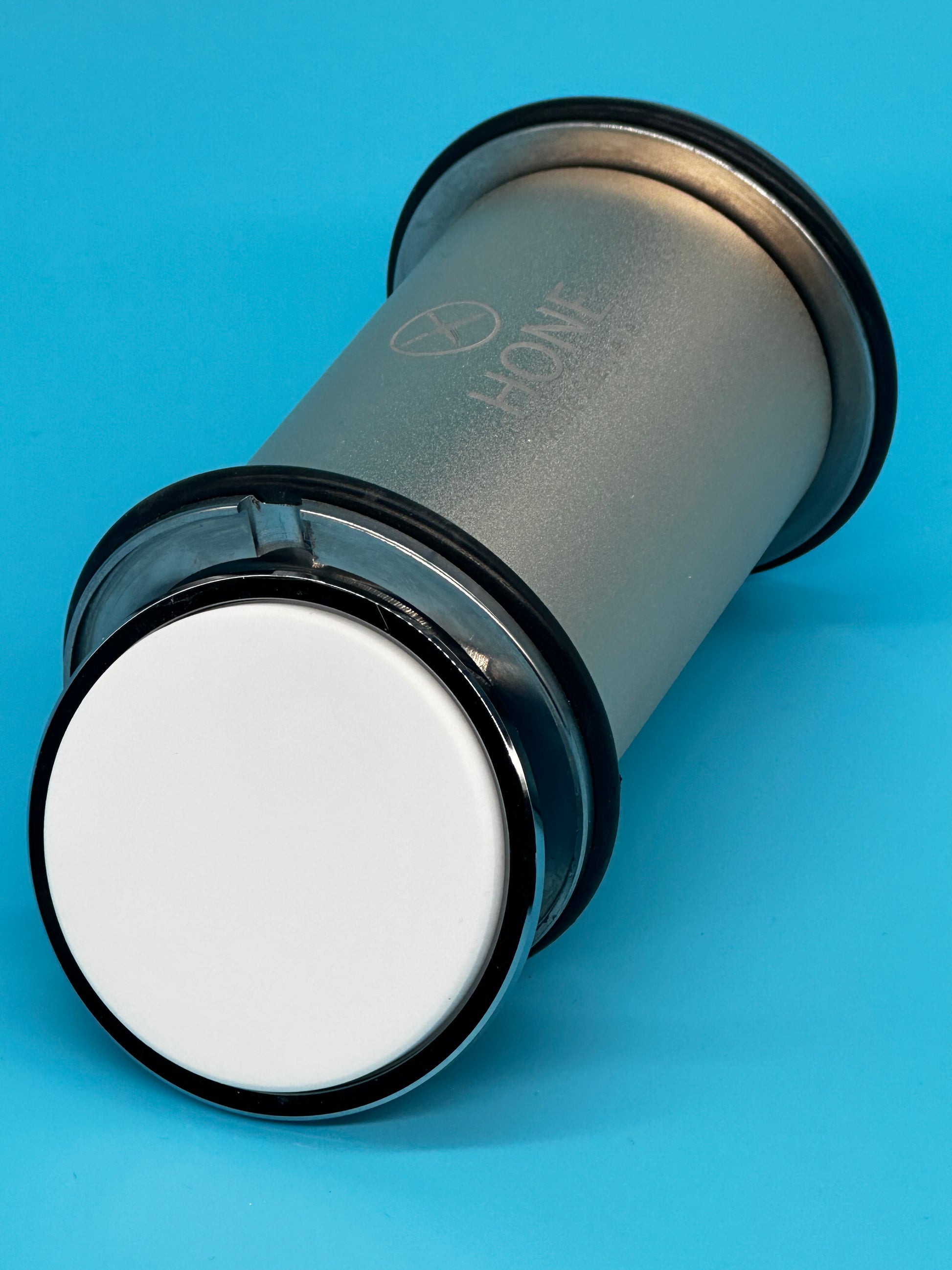 Aluminum, stainless steel, electroplated monocrystalline diamond discs, N52 grade magnets, and rubber.